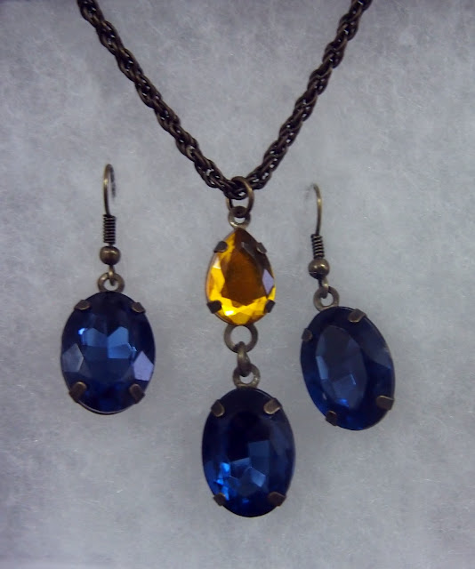 Rustic Blue and Yellow Necklace and Earrings